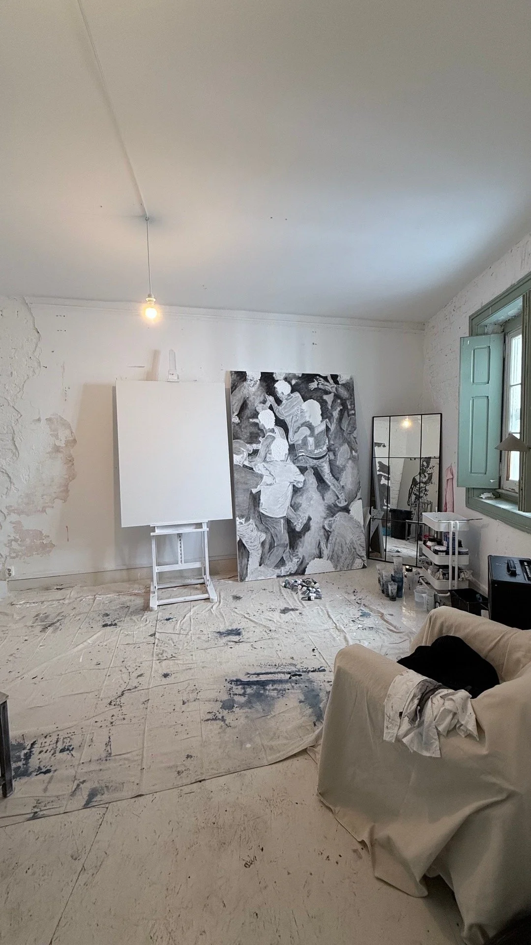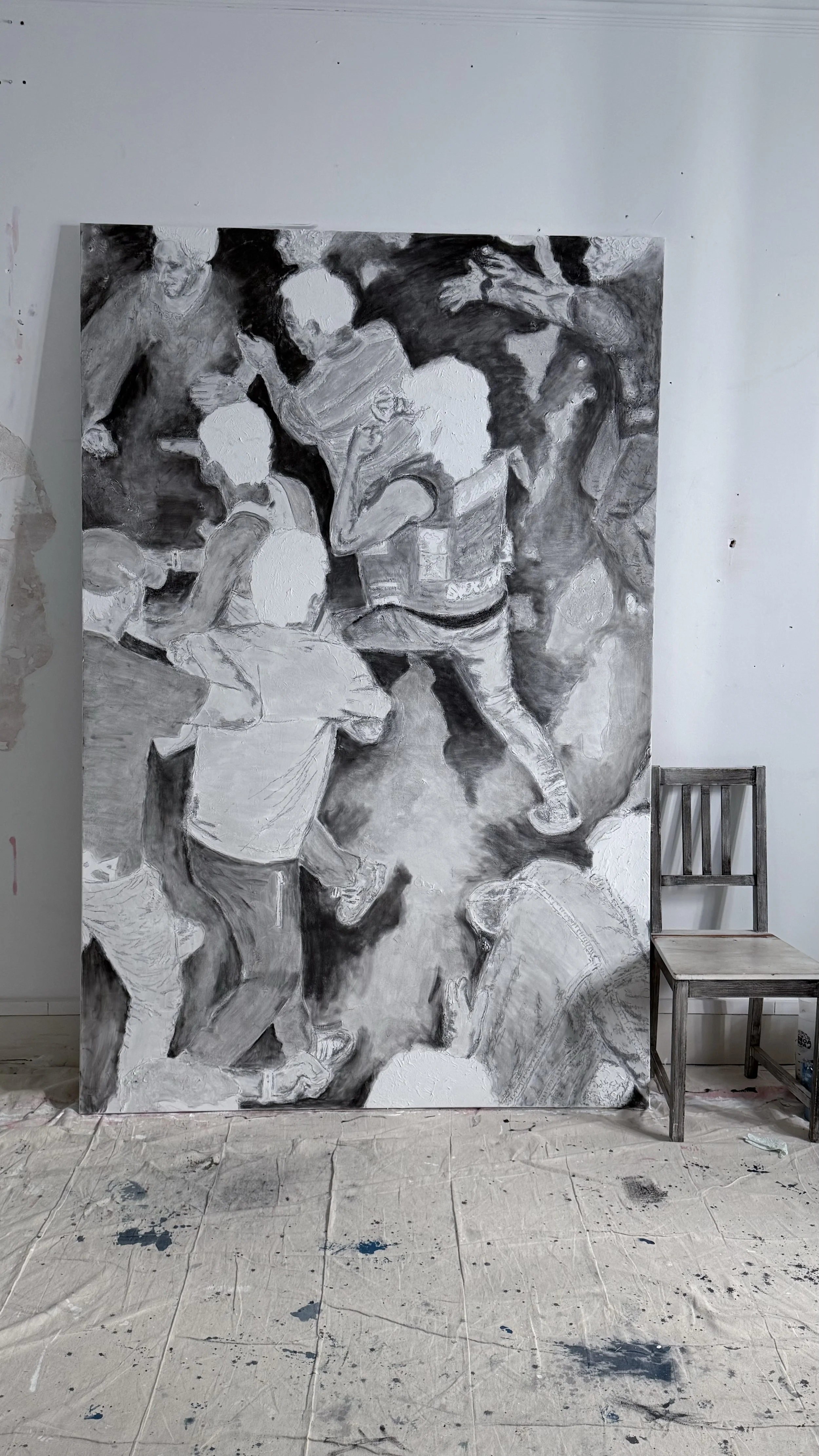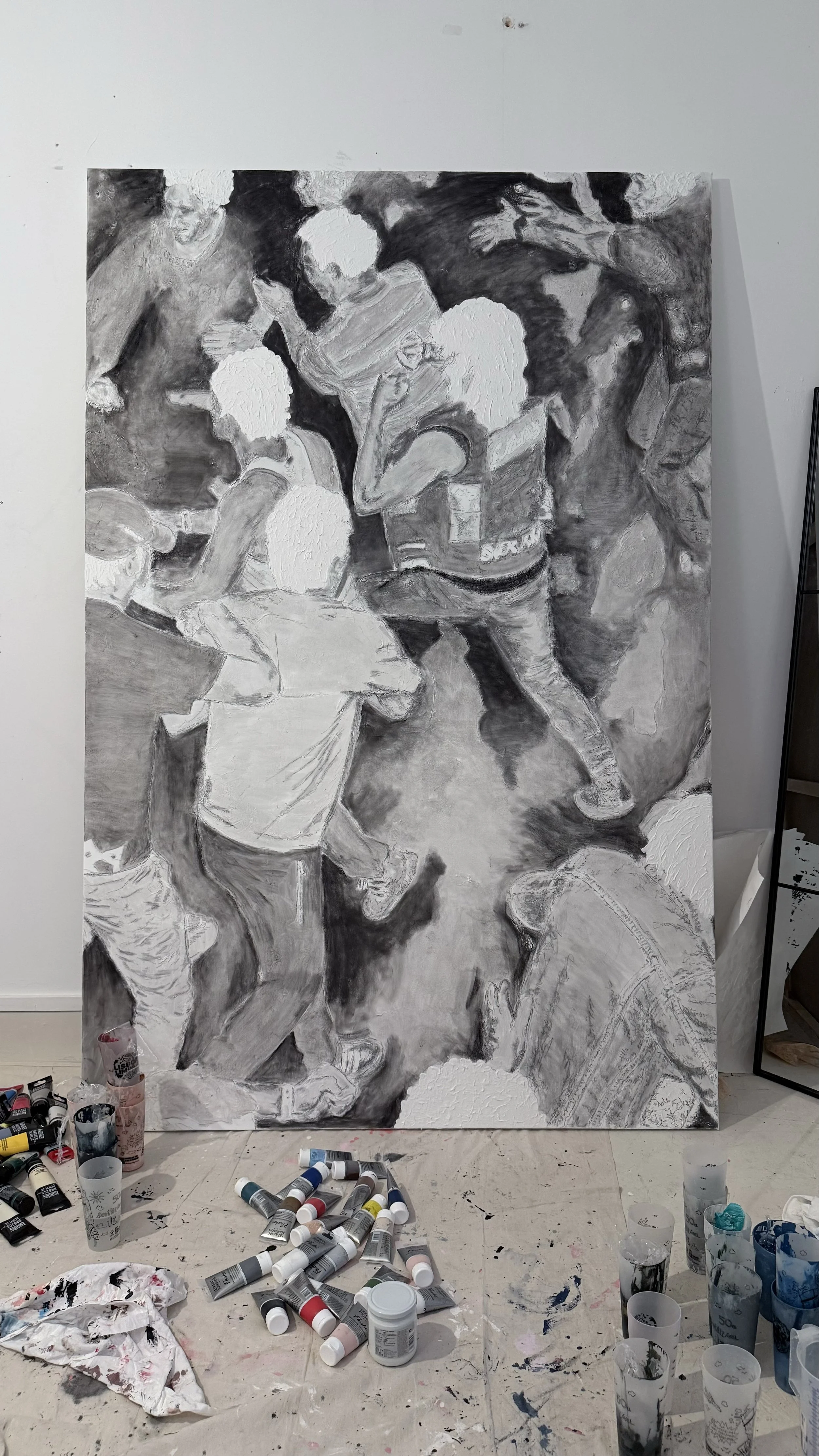 Graphite Pencil, Acrylic, and Charcoal on Canvas