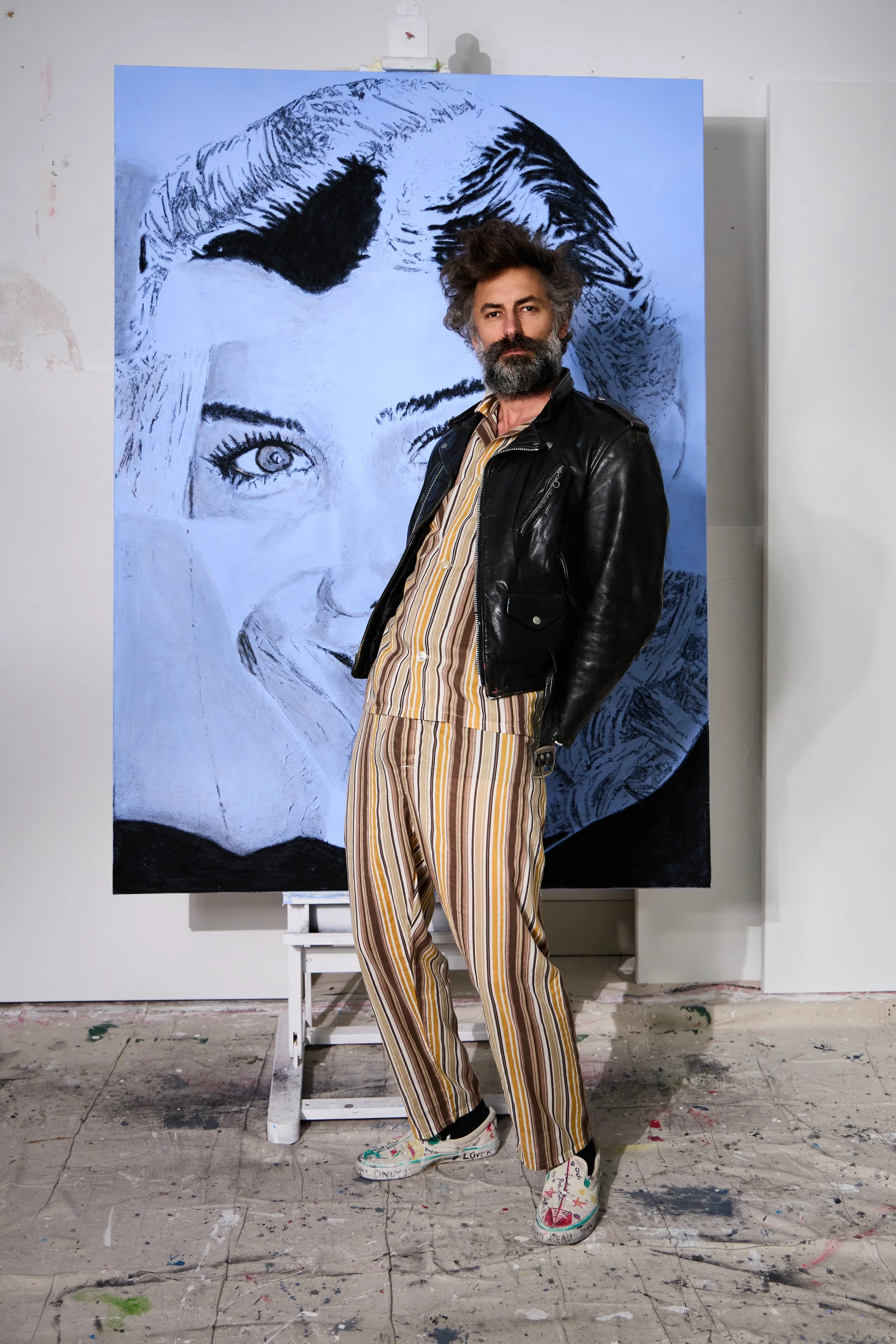 Hard lines. Soft features. A sailor masculine, scribbled in pencil, wearing someone else’s eyes and lips borrowed from a a girl in a fashion magazine. This one’s about control and identity and in the human experience.