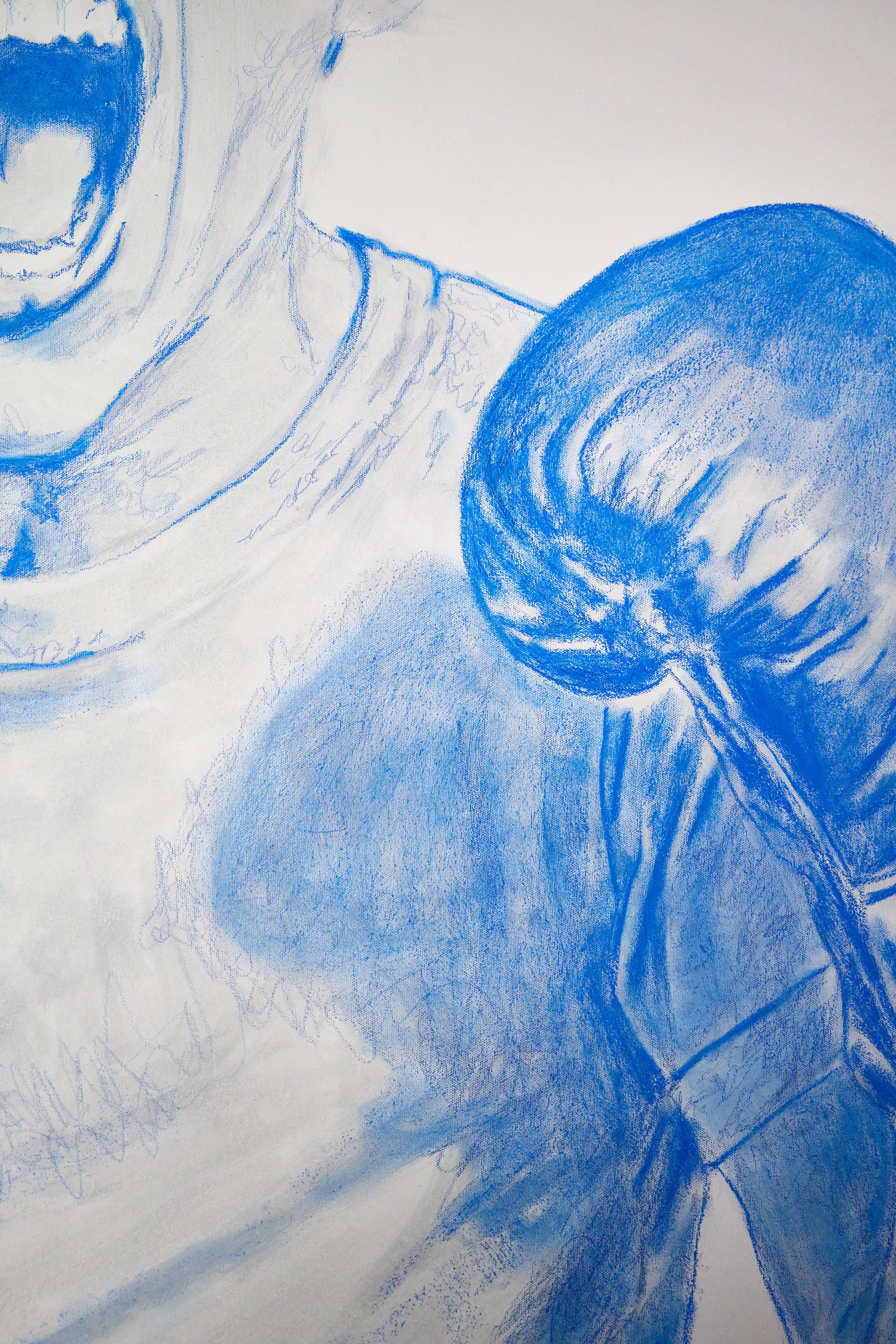 Hard lines. Soft features. A sailor masculine, scribbled in pencil, wearing someone else’s eyes and lips borrowed from a a girl in a fashion magazine. This one’s about control and identity and in the human experience.